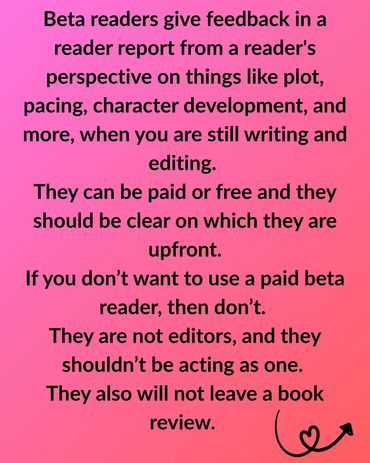 For beta reading, I will give my reactions, thoughts, feelings on every aspect in a reader report. I can also do in-line comments if you choose. I will read the document once.