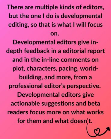For developmental editing, I will use track changes to provide in-line comments for specific feedback I have along with an editorial report.
