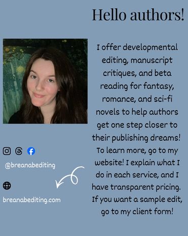 BREANABEDITING HAS OPEN AVAILABILITY! SIGN THE AUTHOR INQUIRY FORM TO GET BOOKED!