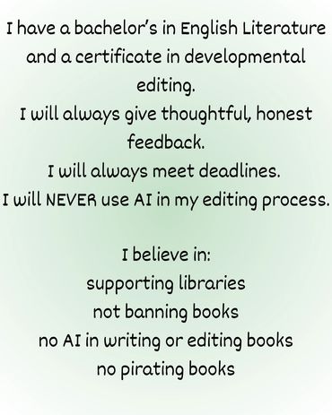 I knew that I wanted to edit books since I was in high school. I have been providing these services for almost 3 years now. I have always dreamed of helping authors in their editing process, which is why I chose to become a freelance editor.