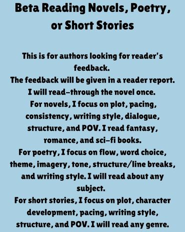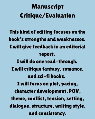 For synopses and blurbs critiques, I will provide feedback on flow, detail, and readability.